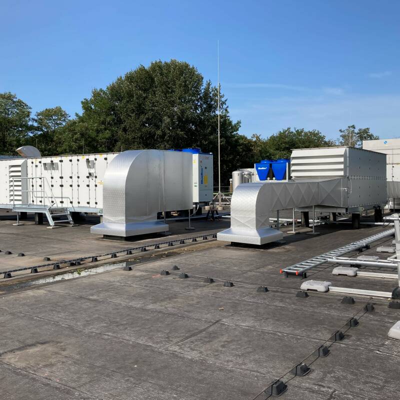 ebbens engineering's air conditioning produces air with a constant moisture content of 1 to 2 g / kg. This is achieved through a combination of condensation and adsorption of the moisture from the air. About half of the moisture condenses in the evaporator and the other half is adsorbed in an adsorption wheel.